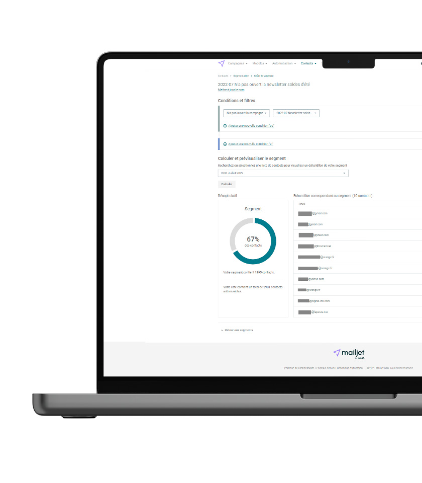 Les outils d’emailing comme Mailjet permettent de segmenter vos bases de données. Une semaine après l’envoi de votre newsletter, créez un segment avec tous les destinataires qui ne l’ont pas ouverte et renvoyez-leur votre newsletter.