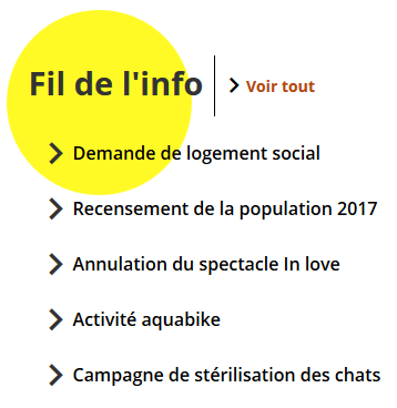 un flux de brèves du type « Fil de l’info » pour des actualités courtes sous forme de liste d’actualités
